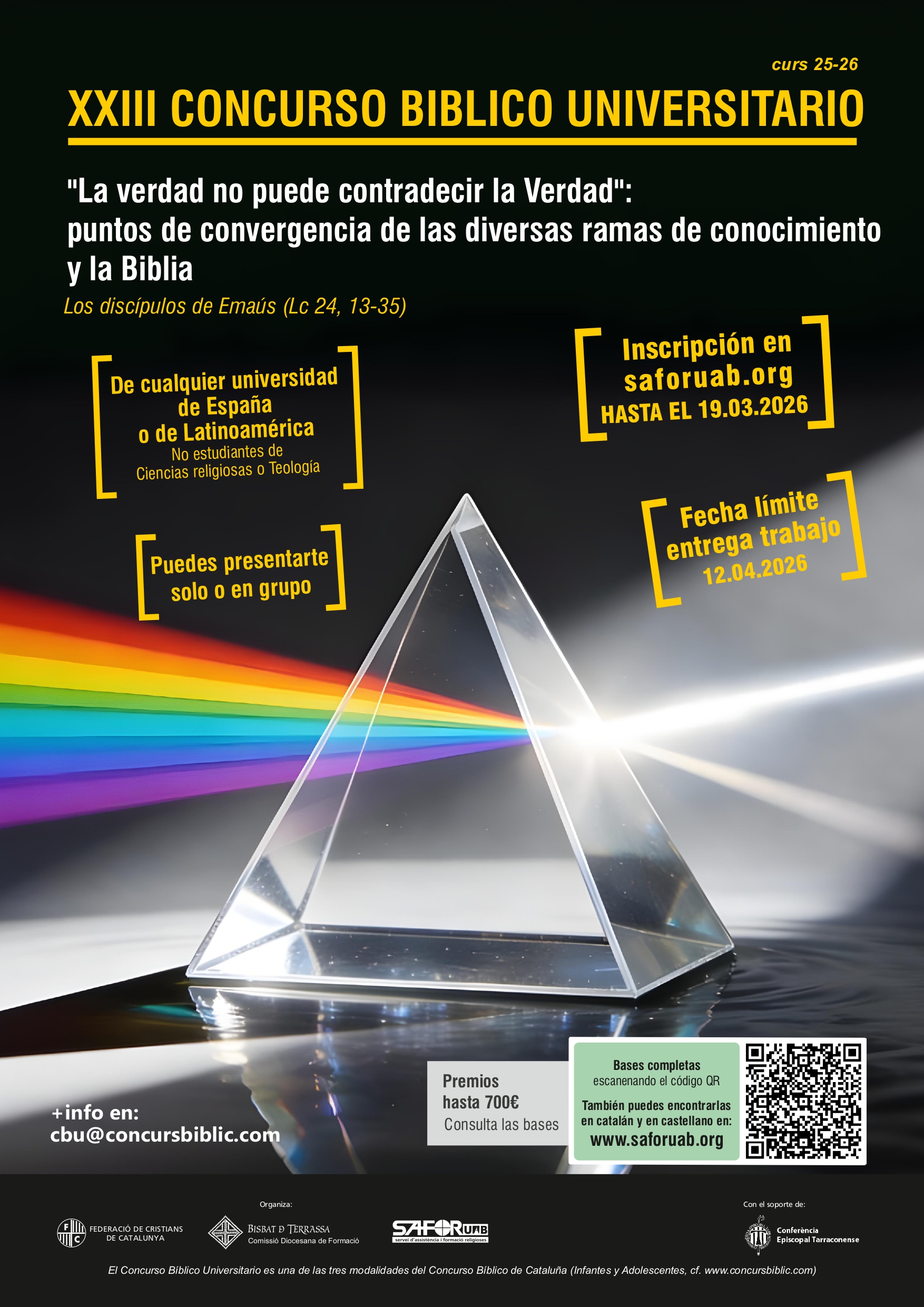 Coorganitzat conjuntament amb el SAFORUAB —Servei d’Assistència i Formació Religioses a la Universitat Autònoma de Barcelona— amb la voluntat d’ajudar els universitaris a descobrir i a enamorar-se de la Font de vida que es troba a la Bíblia.