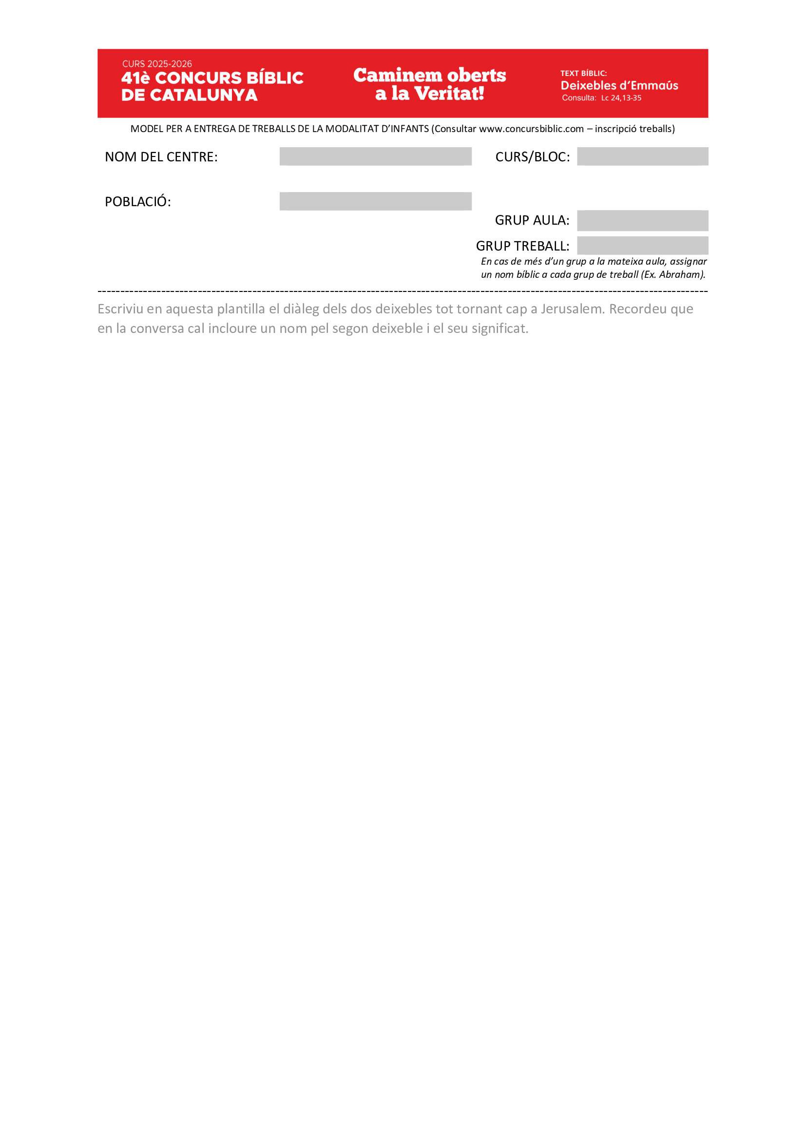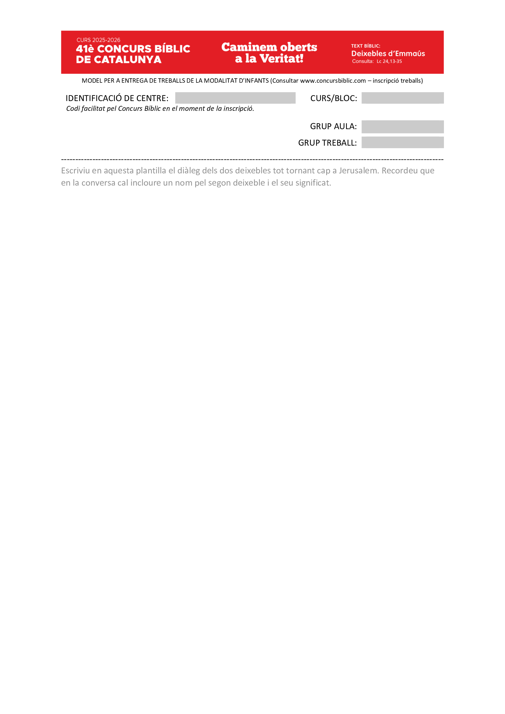 Seguint la tradició del Concurs Bíblic, que al llarg de 40 edicions ha ajudat a despertar en infants, adolescents, joves i universitaris la importància del coneixement i l’ús de la Bíblia per acostar-nos a la figura de Jesús de Natzaret , la 41a edició continua per aquest camí amb el desig de donar una nova embranzida a la recerca de l’esperança veritable.